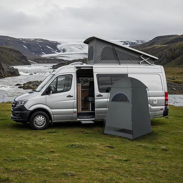 Turistická převlékací kabina NC3025 byla navržena pro uživatele, kteří si cení pohodlí a soukromí i v kempových podmínkách. Její největší předností je vnitřní prostor – až 210 cm na výšku a 120 cm na šířku a hloubku. Model NC3025 tak lze pohodlně využít jako mobilní převlékací kabinu, sprchový kout nebo turistické WC. Uvnitř se lze pohodlně převléct, nebo například přivést hadičku od solární sprchy a dopřát si večerní očistu, aniž byste se museli bát nedostatku prostoru.