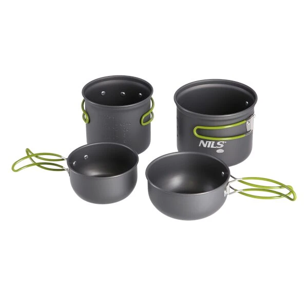 NC1767 je sada nádobí sestávající ze dvou hrnců a dvou misek, které zároveň fungují jako pánve na smažení. Tato sada vám umožní připravovat rychlá a výživná jídla nad táborákem nebo vařičem.