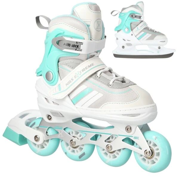 NILS Extreme NH18191 jsou kolečkové brusle s vyměnitelným nožem na led, které jsou určeny pro začínající a středně pokročilé uživatele.
