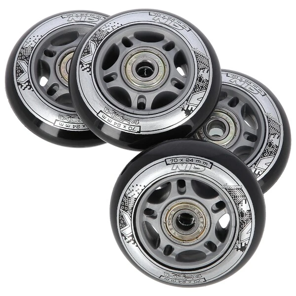 Náhradní sada koleček velikosti 70x24 mm černé barvy a tvrdostí 82 A s ložisky ABEC 9.