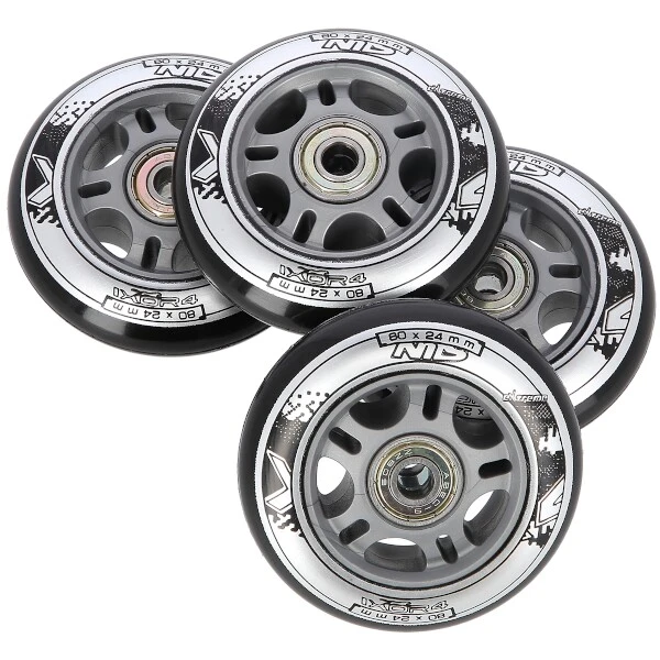 Náhradní sada koleček velikosti 76x24 mm černé barvy a tvrdostí 82 A s ložisky ABEC 9.