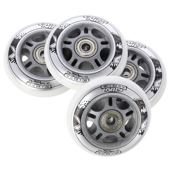 Náhradní sada koleček velikosti 80x24 mm mléčné barvy a tvrdostí 82 A s ložisky ABEC 7.