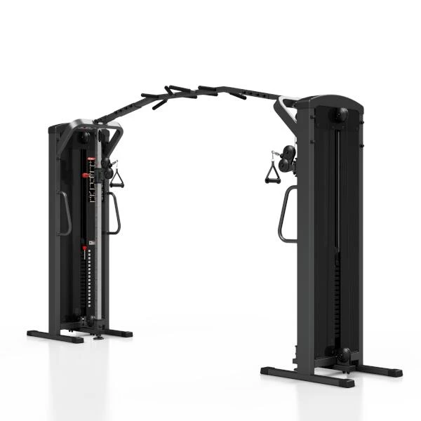 Posilovací brána MARBO MP-U204 s nastavitelnou výškou kladek a sestavou hrazd je nekompromisní, profesionální vybavení pro Vaší posilovnu. Pro výrobu byly zvoleny ocelové profily 120x60x3mm a 80x40x3mm, které zaručují nečekanou trvanlivost. Variabilitu použití zajištují výškově nastavitelné kladky. Jejich posun je řešen kluzným pouzdrem s pružinovým kolíkem červené barvy. Na výběr máte z 16-ti nastavení výšky. Na centrálním nosníku se nachází 8 různých madel, jejichž nakombinováním lze dosáhnout až 10-ti různých úchopů. Úchyty jsou opatřeny vrstvou silné pěny pro pohodlný grip. Dva samostatné štosy o hmotnosti 80kg (celkem 160kg) jsou odstupňovány po 5kg. Obě centrální části brány jsou zakrytovány černým plastem a v místě štosů je použito průhledné plexisklo. Stroj je navíc opatřen velikou samolepkou, která instruuje cvičence, jaké cviky jdou na bráně provádět a které skupiny svalů daný cvik posiluje.