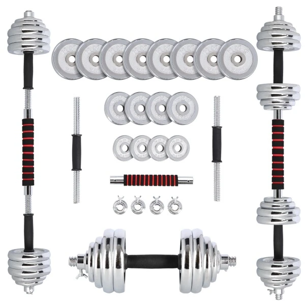 Činky jsou vyrobeny z vysoce kvalitní, chromované oceli, která je zárukou dlouhé životnosti. Kotouče se proti posunutí zajišťují šroubovacími zámky, které jsou dodatečně jištěny šroubem s křídlovou matkou.