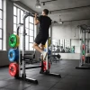 Model KLT5432 disponuje integrovanými odkládacími trny na olympijské kotouče, které pomáhají udržet pořádek v tréninkové zóně.