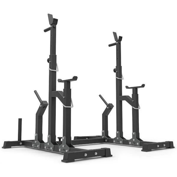 Stojan pod velkou činku MARBO MS-S104 2.0 je ideálním doplňkem k tréninku dřepů, dipů a díky bezpečnostním zarážkám je přímo předurčen k benchpressu.