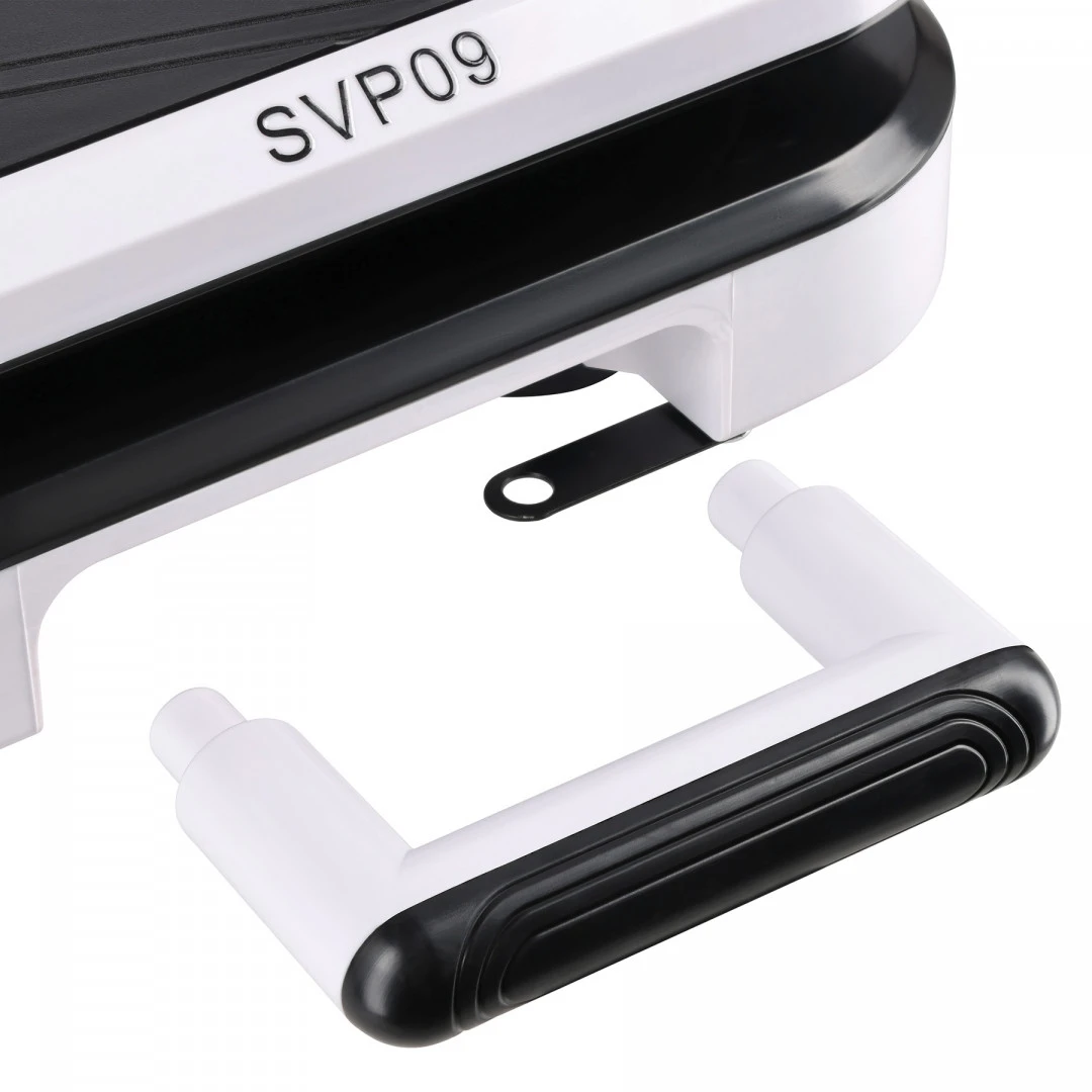 Model SVP09 pracuje v ose nahoru–dolů, čímž vytváří intenzivní vibrace aktivující i hluboké svalové skupiny. Intenzitu lze nastavit v rozsahu 1–120 úrovní podle aktuální kondice a cíle tréninku. Amplituda vibrací 1–2,8 cm zvyšuje účinnost cvičení a podporuje lepší zapojení svalstva.