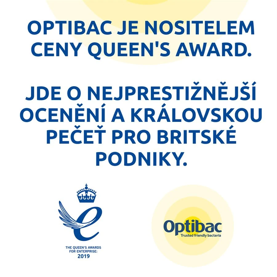 Společnost Optibac je hrdým nositelem ocenění Queen's Award - nejprestižnější královské ceny a královské pečeti pro britské podniky, které je celosvětově uznávané a označuje ty nejlepší společnosti v oboru.