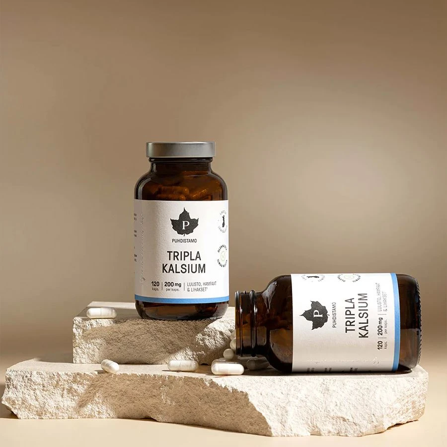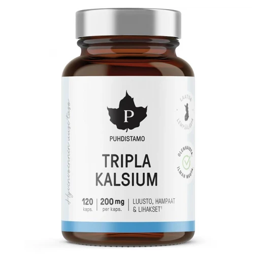 Tripla Calcium obsahuje tři formy vápníku pro co nejefektivnější doplnění tohoto zásadního minerálu do organismu. Uhličitan vápenatý je běžná forma vápníku, která má alkalickou povahu, používá se kromě doplnění vápníku také při refluxu a zmírňuje kyselé prostředí žaludku. Malát vápenatý je organická forma vápníku, kde je vápník spojený chelátovou vazbou s kyselinou jablečnou, a bisglycinát je organická forma spojená s aminokyselinou glycin.