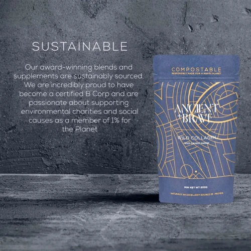 Zcela nový Wild Marine Collagen obsahuje snadno stravitelné a vysoce biologicky dostupné hydrolyzované mořské kolagenové peptidy typu 1. Kolagen pochází z udržitelného rybolovu od volně žijících bílých ryb v ledových vodách Severního Atlantiku.