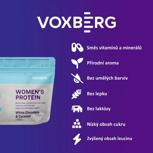 - Nízký obsah cukru - jedna 30 g porce našeho Women's Proteinu obsahuje méně než 0,5 g cukru, takže je vhodný i pro nízkosacharidovou dietu