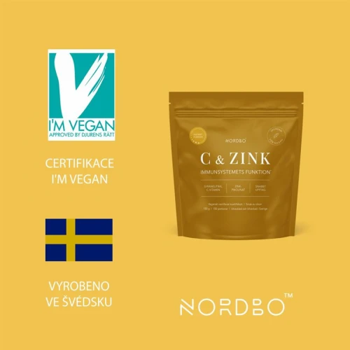 Nordbo Vitamin C & Zinc obsahuje dvě složky důležité pro efektivní obranný štít - vitamín C a zinek. Vitamín C je v doplňku obsažený ve velmi vysoké dávce, Navíc je v kysele neutrální formě askorbátu vápenatého, je tedy šetrný k žaludku. Zatímco zinek je v chelátované formě pikolinátu zinečnatého, kdy je zinek vázaný s kyselinou pikolinovou (přirozený metabolit tryptofanu), a je tedy velmi dobře dostupný pro tělo.