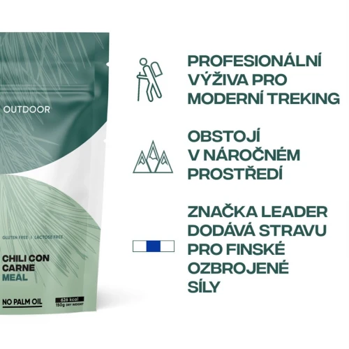 Produkty Leader musely vyhovět náročným armádním požadavkům na špičkovou výživu, kterou je možné připravit během několika minut bez nutnosti další nádoby. Produkty Leader dodají všechny potřebné makronutrienty, jsou ve vodotěsném, odolném a lehkém balení, vyhovujícím všem nárokům moderního trekingu.