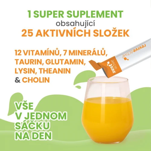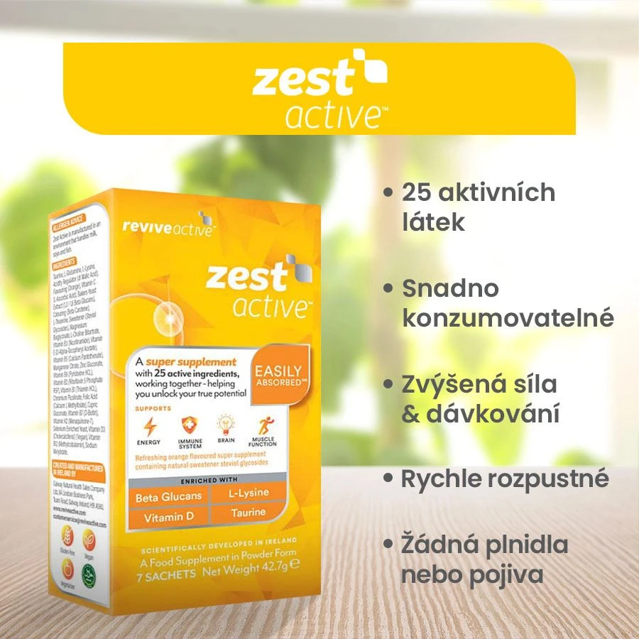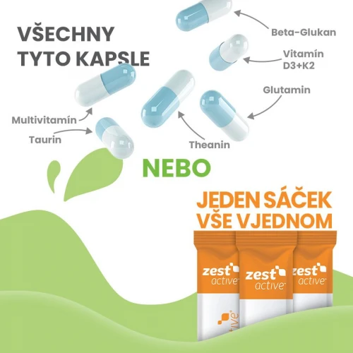 Zest Active je komplexní produkt z kategorie vše v jednom, s obsahem všech nejdůležitějších doplňků stravy v jednom produktu a v jedné denní dávce!