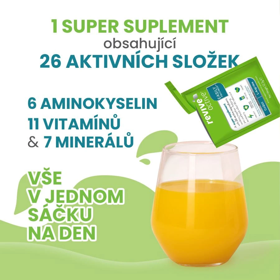Revive Active je komplexní produkt z kategorie vše v jednom, s obsahem všech nejdůležitějších doplňků stravy v jednom produktu a v jedné denní dávce!