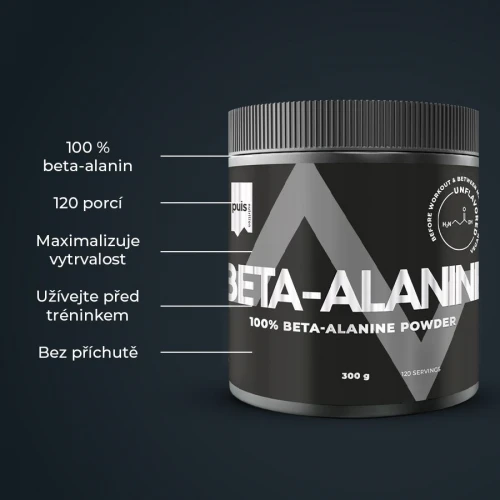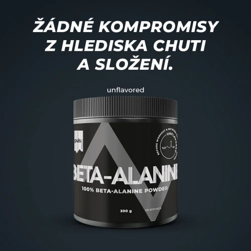 Maximalizujte výsledky! PULS Beta-Alanin je navržen pro podporu vytrvalostního a silového tréninku. Obsahuje vysoce kvalitní beta-alanin – nic víc a nic méně. Tato aminokyselina známá z produktů na podporu výkonu ovlivňuje hladinu karnosinu ve svalech. Pokud chcete trénovat intenzivněji a vydržet déle, je tento produkt určen právě vám. Neochucenou formuli lze užívat samostatně rozmíchanou ve vodě nebo jako součást vlastního tréninkového nápoje. Užívejte maximálně 30 minut před tréninkem. Žádné kompromisy z hlediska jedinečné chuti a složení. Finská značka PULS NUTRITION patří ve všech ohledech k absolutní špičce sportovní a doplňkové výživy.