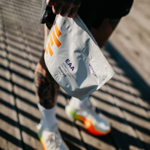 EAA dodávají vašemu tělu esenciální aminokyseliny, které potřebujete pro svůj výkon a udržení svalové hmoty, a to tím nejefektivnějším možným způsobem. Jsou vhodné pro vegany, neobsahují žádný přidaný cukr a k jejich ochucení používáme pouze přírodní aromata. EAA představují ještě efektivnější formu regenerace než BCAA, jde o 9 esenciálních aminokyselin, které významným způsobem podporují svalová vlákna. Pro oddálení pocitu únavy, bolesti a prodloužení výkonu lze užívat už během výkonu.