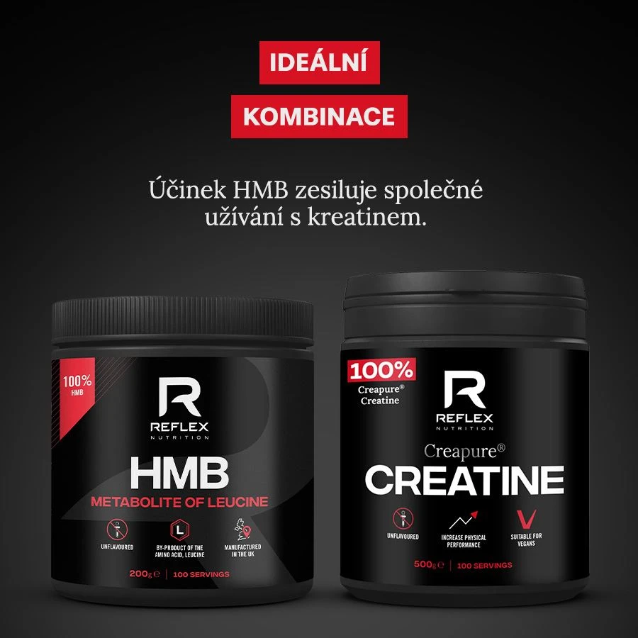 HMB neboli beta-hydroxy-beta-metylbutyrát je dobře známým doplňkem, který lze doporučit všem jedincům orientovaným na růst svalové hmoty a regeneraci. Sám o sobě je velice účinný a efekt lze posílit i v kombinaci s jinými doplňky. Jde o metabolit aminokyseliny leucin, který je v malém množství přirozeně vytvářen v těle při proteinové syntéze. V malém množství se také vyskytuje v grapefruitu, vojtěšce nebo masu sumce.