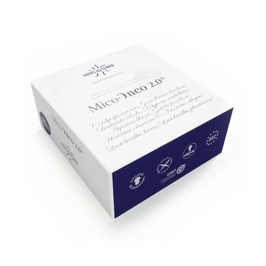 Receptura Mico-)nco je založena na symbióze silných bioaktivních extraktů z adaptogenních hub, které jsou upraveny procesem fermentace a následně převedeny do formátu nanoemulze, která zvyšuje biologickou dostupnost a vstřebávání až o 70 %.