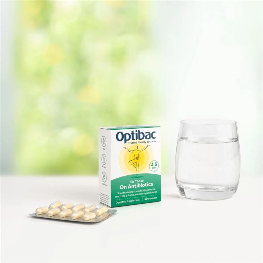 Optibac On Antibiotics je doplněk stravy s obsahem tří speciálních druhů probiotik určených po podporu během léčby antibiotiky. Tyto speciálně vybrané kmeny byly prověřený klinickými zkouškami, aby obstály při současném užívání s antibiotiky a prošly bez úhony kyselým prostředí žaludku. On Antibiotics obsahují dva druhy kultur z kmenů Lactobacillus a jeden druh kmene Bifidobacterium. Optibac On Antibiotics je určený pro obnovu mikrobiumu poškozeného antibiotiky. Spolu s obnovou rovnováhy prospěšných kultur v zažívacím traktu se obnovuje i obranný štít a celková fyzická i psychická kondice.