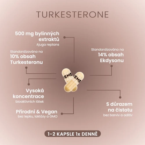 Originální, koncentrovaný Turkesteron je velmi těžko dostupný a dokonce i v dnešní době mohou vybraní distributoři prodávat produkt pouze omezenému počtu kupujících, protože je velmi vzácný. Vyhledat tuto divoce rostoucí rostlinu není snadné, dalším důležitým faktorem je genotyp rostliny, vegetační období a prostředí, kde je sklízena. Následuje extrakce turkesteronu, která představuje krok ještě obtížnější. Originální VemoHerb Turkesteron představuje ve své kategorii naprostou špičku!