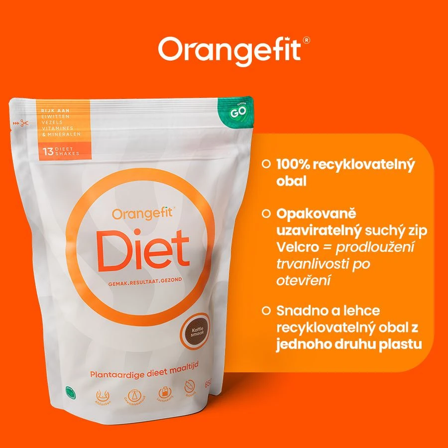 Orangefit Diet je plnohodnotná zeštíhlující strava, včetně všech důležitých esenciálních aminokyselin, vlákniny a nenasycených tuků, která je zkombinována se všemi vitamíny a minerály, které potřebujete. S osvěžujícím zeleným čajem a prémiovým hrachovým proteinem. Perfektní jako velmi chutná náhrada za každodenní snídani, oběd nebo večeři.