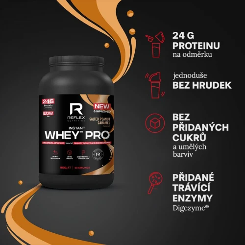 Instant Whey™ PRO je vlajkovou lodí mezi proteiny Reflex Nutrition a je populární z dobrého důvodu. Oproti proteinu použitému ve 100% Whey má nižší obsah tuku, méně kalorií a řidší konzistenci. Je tak skvěle vybalancovaný, i z hlediska vysokého obsahu proteinu. Velmi snadno se konzumuje a zároveň přimíchává do proteinových smoothies nebo kaší.