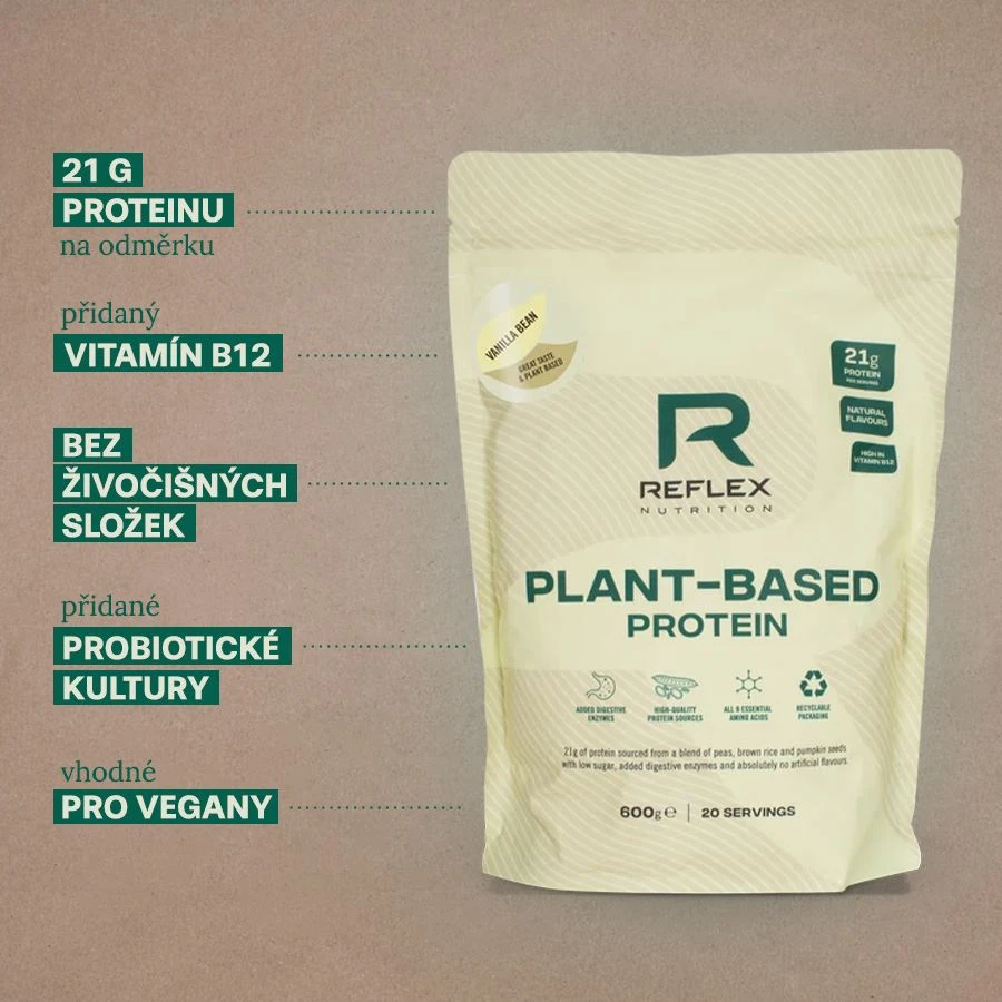 Plant Based Protein je nejnovější rostlinná formule od Reflexu a zároveň nástupce Vegan Proteinu, který byl měřítkem v oblasti chuti mezi rostlinnými proteiny. Plant Based Protein se snaží tuto laťku posunout ještě dál a nabídnout několik lahodných příchutí. Ty připravil tak, aby byly pohlazením pro chuťové buňky a zároveň tak perfektní odměnou po tvrdém tréninku, nebo výživově čistým zákuskem kdykoli během dne při práci nebo doma. Plant Based Protein je rovněž dostupný v 600g balení i v jednorázových sáčcích. Je slazený sukralózou.