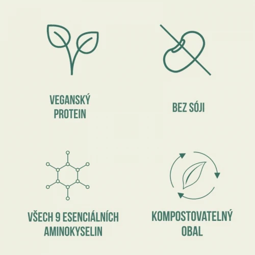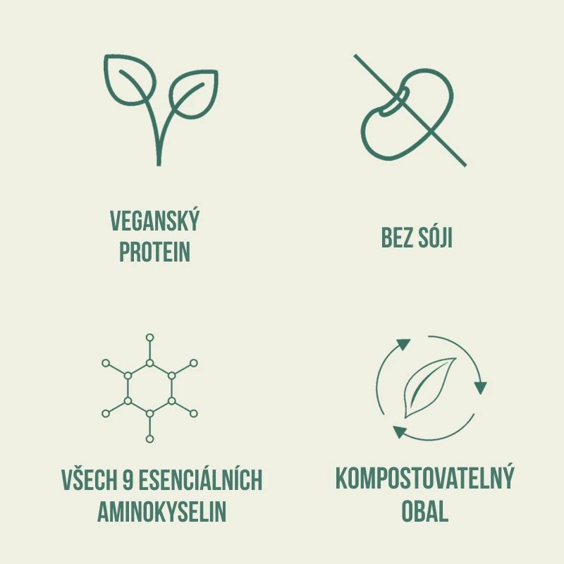 - Rostlinný protein – hrachový, rýžový a dýňový