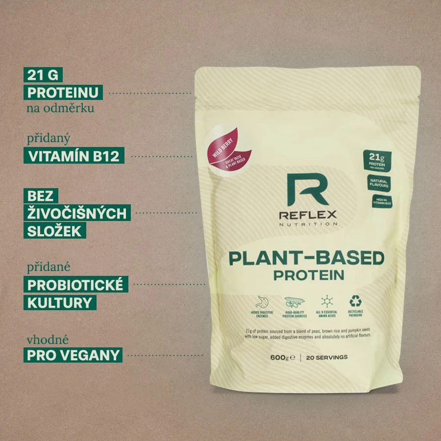 Plant Based Protein je nejnovější rostlinná formule od Reflexu a zároveň nástupce Vegan Proteinu, který byl měřítkem v oblasti chuti mezi rostlinnými proteiny. Plant Based Protein se snaží tuto laťku posunout ještě dál a nabídnout několik lahodných příchutí. Ty připravil tak, aby byly pohlazením pro chuťové buňky a zároveň tak perfektní odměnou po tvrdém tréninku, nebo výživově čistým zákuskem kdykoli během dne při práci nebo doma. Plant Based Protein je rovněž dostupný v 600g balení i v jednorázových sáčcích. Je slazený sukralózou.