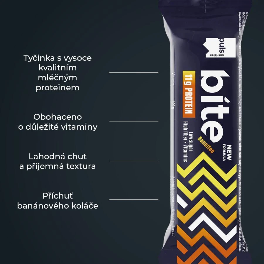 Lahodná porce proteinu v tyčince s příchutí banánového koláče. Dejte si kousek a vychutnejte si skvělou svačinu bohatou na bílkoviny. Tato tyčinka s nízkým obsahem cukru je vyrobena z kvalitního mléčného proteinu, je plná vlákniny, důležitých vitaminů a kolagenových peptidů hovězího původu. Díky výjimečné chuti a jemné textuře je ideálním zdrojem energie na cesty. Výborná mezi jídly nebo po tréninku. Žádné kompromisy z hlediska jedinečné chuti a složení. Finská značka PULS NUTRITION patří ve všech ohledech k absolutní špičce sportovní a doplňkové výživy.