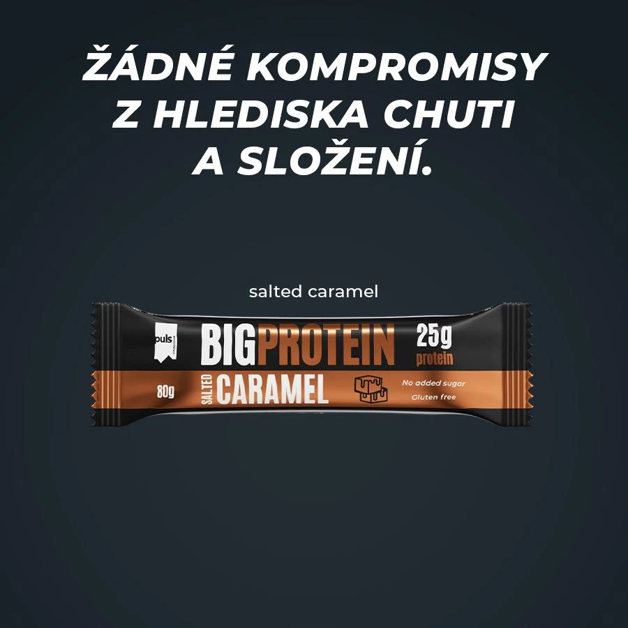 Doplňte protein a odměňte se! Big Protein – naše nejnovější a dosud největší proteinová tyčinka! Obsahuje skvělých 25 g vysoce kvalitních bílkovin, kolagenní peptidy, má nízký obsah cukru a lahodnou příchuť slaného karamelu. Tato tyčinka je navržena tak, aby podpořila svaly a regeneraci po tréninku. Skvěle poslouží také jako svačina, když vás přepadne pořádný hlad.