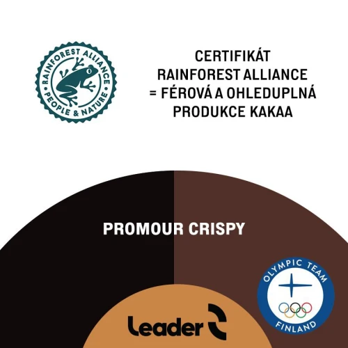 Prémiová proteinová tyčinka s mléčným proteinem, kolagenem a sójovými křupinkami. Žádné kompromisy v chuti, vzhledu ani výživových hodnotách. Tyčinka má certifikaci UTZ spadající pod organizaci Rainforest Alliance, která garantuje, že obsažené kakao pochází z udržitelného pěstitelství.