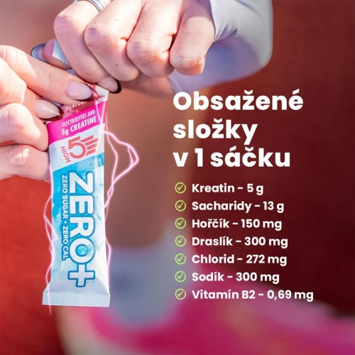Zero+ Creatine je efektivní iontový nápoj pro hydrataci a výkon, který kombinuje denní dávku kreatinu s elektrolyty. Zero+ Creatine spojuje výhody hydratace, výkonu a podpory soustředění v jednom jednoduchém denním sáčku. Díky 5 g kreatinu v každém sáčku vás Zero+ Creatine podpoří i v těch nejnáročnějších trénincích a pomůže vám dosahovat cílů – malých i velkých.