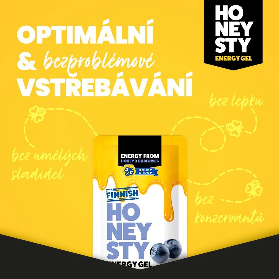HONEYSTY = SÍLA, ČISTOTA A JEMNOST FINSKÉHO MEDU HONEYSTY = UNIKÁTNÍ ENERGETICKÝ GEL ŠETRNÝ K ŽALUDKU HONEYSTY = 100% NATURÁLNÍ VOLBA