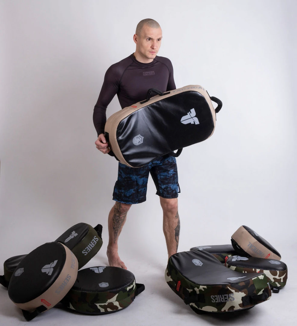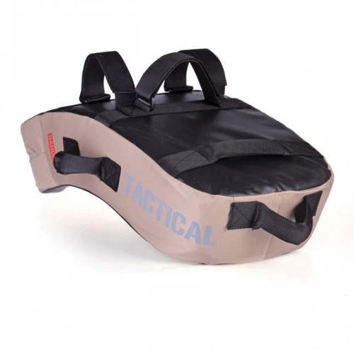 Lapa Fighter - MULTI GRIP TACTICAL SERIES - DESERT v oválném tvaru je vyrobena pro nácvik kopů a úderů. Tento mírně prohnutý blok má pro větší bezpečnost zakulacené rohy a perfektní ergonomický tvar. Lapa je nově vybavena pěti úchyty a pro větší variabilitu tréninku nechybí ani tři popruhy na zadní části. Výplň tvoří speciální molitanová směs, lapa tedy skvěle pohlcuje i ty nejsilnější údery. Díky univerzálnosti je blok vhodný pro většinu bojových sportů. vysoká životnost výrobku vyrobeno v České republice všechny použité materiály jsou z EU jednoduché upínání na suchý zip Velikost: výška: 64 cm; šířka: 36 cm; tloušťka: 15,5 cm