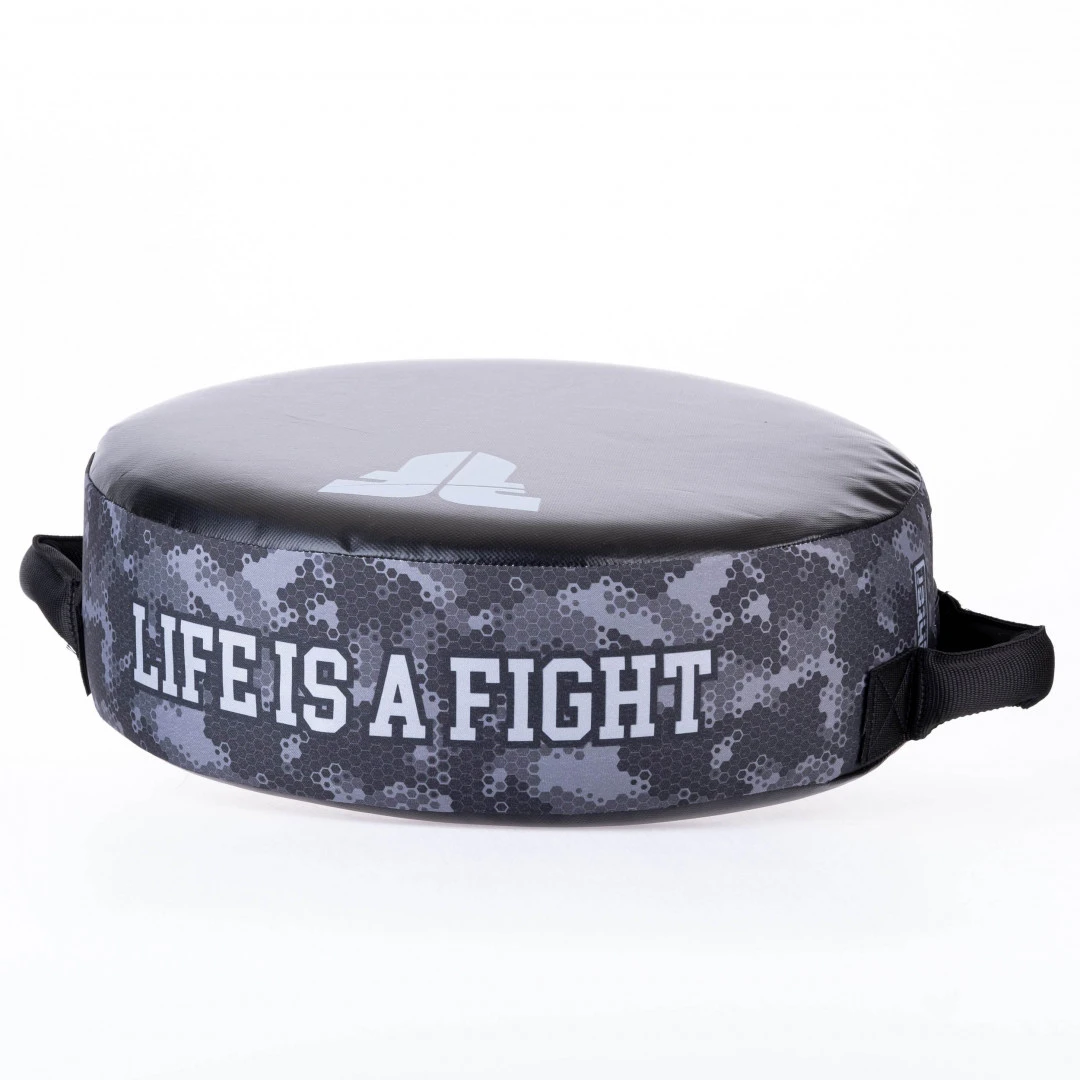 Kulatá lapa Fighter Life Is A Fight - Grey Camo nabízí nové tréninkové možnosti. Lapa se dá držet jen jednou rukou, anebo oubouručně. Díky jednoduchému konstrukčnímu řešení, nízké váze a pevnosti použitých materiálů je tento výrobek vhodný k tréninku všech kopů a úderů, stejně tak k silovému, nebo rychlostnímu tréninku. všechny použité materiály jsou z EU vysoká životnost výrobku potisk na straně lapy je sublimovaný vyrobeno v České republice