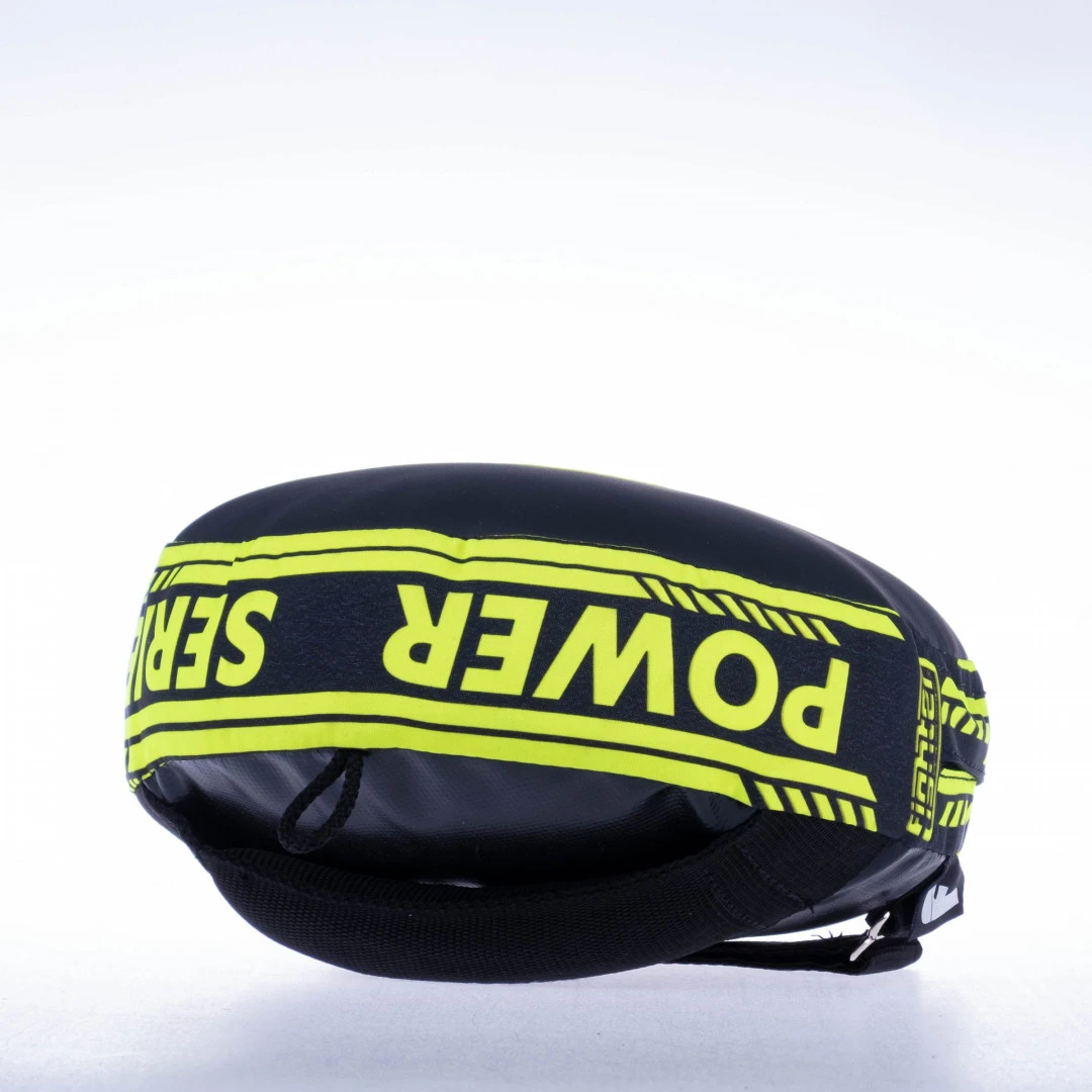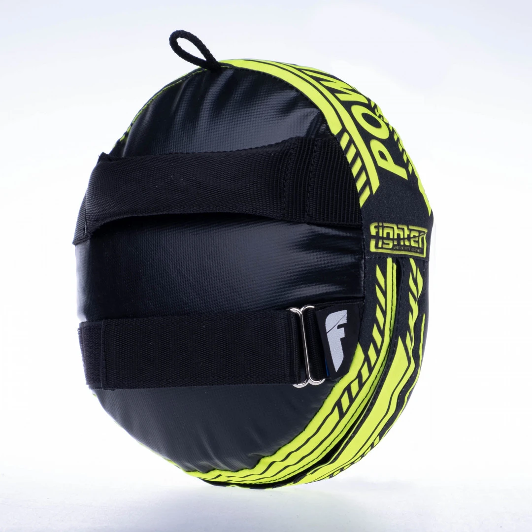 Fighter lapa kulatá Power Series - černá/neon nabízí nové tréninkové možnosti. Díky jednoduchému konstrukčnímu řešení, nízké váze a pevnosti použitých materiálů je tento výrobek vhodný k tréninku všech kopů a úderů, stejně tak k silovému, nebo rychlostnímu tréninku. Přední povrch lapy je vyroben z měkčené syntetické kůže. Výplň je řešena několika vrstvami PUR pěny a EVA pěny. Všechny tyto pěny jsou vyrobeny v EU. Unikátní drcená vrstva PUR pěny umístěná uprostřed lapy, dává výrobku maximální absorbční schopnost při jakémkoli kopu či úderu. všechny použité materiály jsou z EU vysoká životnost výrobku potisk ze strany je sublimovaný vyrobeno v České republice