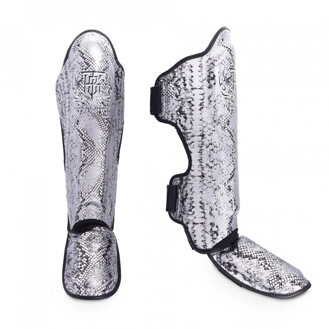 Chrániče holení Top King SUPER SNAKE - černo stříbrnéChrániče holení a nártů od legendární Thajské značky TOP KING model SUPER SNAKE v černo stříbrné barvě. Chrániče Top King jsou vyrobeny z pravé kůže, mají pásky na suchý zip, které se přizpůsobí přirozenému tvaru nohy. Chrániče holení jsou vhodné pro všechny bojové sporty speciálně pak pro Muay Thai.- zesílené polstrování pro efektivní ochranu- nízká hmotnost pro snadnou manipulaci- ruční výyroba v Thajsku- délka holeně: S 39cm, M 41cm, L 43cm, XL 45cm- materiál: kůžeTop King