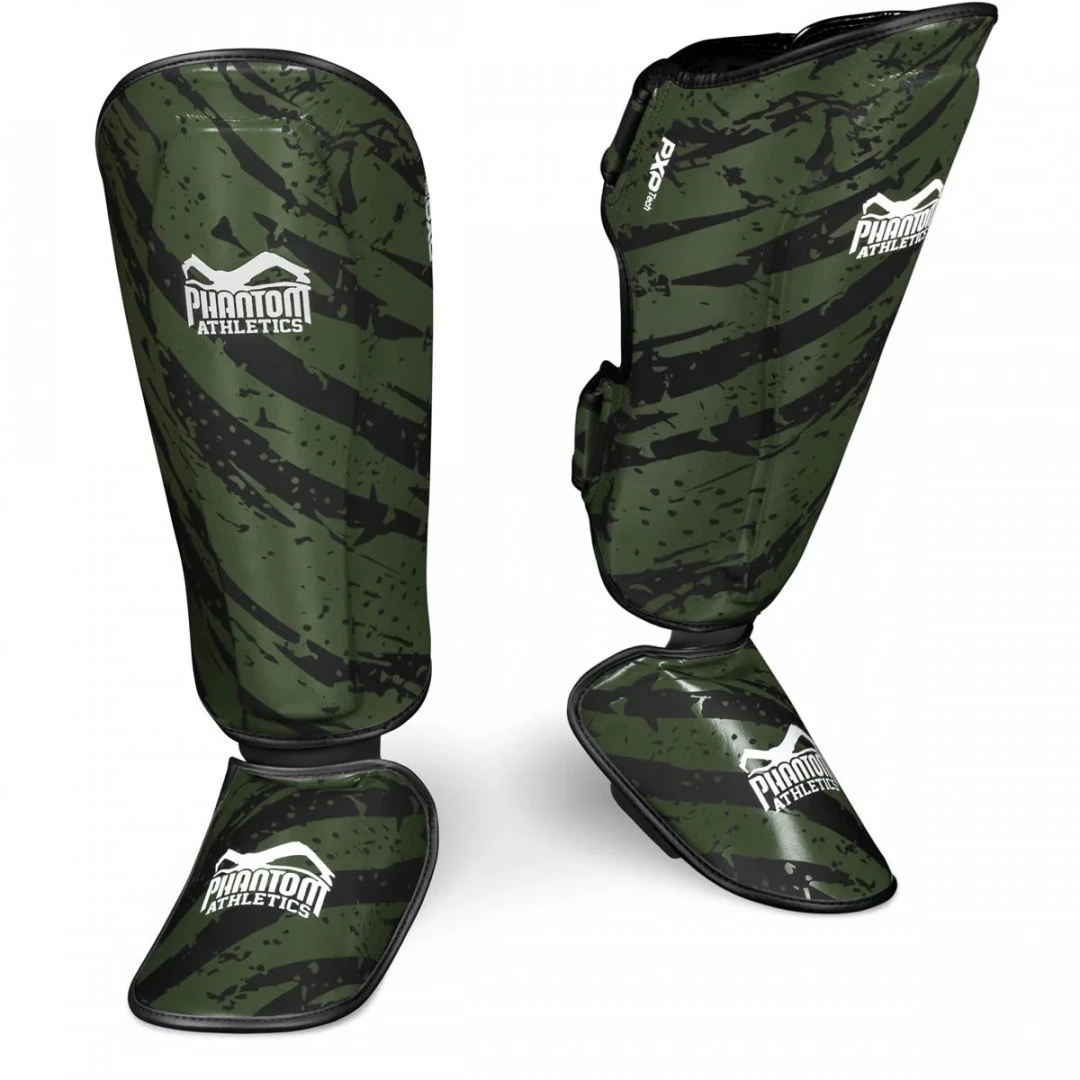 Chrániče holení PHANTOM - Camo TigerPHANTOM Chrániče holení na bojové sporty jako Muay Thai, Kick Box, MMA a další v army zelené barvě s tygřím vzorem. PHANTOM Chrániče holení Camo Tiger jsou vyrobeny z materiálu PU. Extra silné polstrování na povrchu. Vlastnosti porduktu:- Chrániče holení pro trénink bojových umění- 2 suché zipy a elastický pásek zajišťují dokonalé držení- Extra silné polstrování přední části chodidla- Materiál: PU- 100% vegan- S/M - pro sportovce do výšky cca 175cm- L/XL - pro Sportovci od cca 175cm výškyPHANTOM