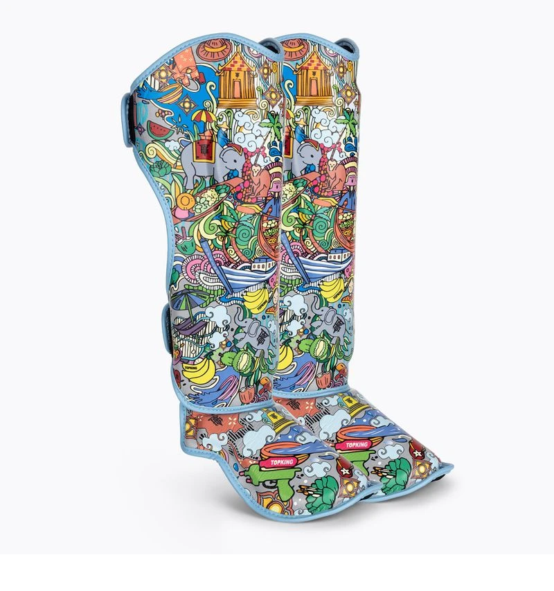 Chrániče holení Top King - THAI CULTUREChrániče holení a nártů od legendární Thajské značky TOP KING model THAI CULTURE v barevné kombinaci. Chrániče holení Top King jsou vyrobeny z pravé kůže, mají pásky na suchý zip, které se přizpůsobí přirozenému tvaru nohy. Chrániče holení jsou vhodné pro všechny bojové sporty speciálně pak pro Muay Thai.- zesílené polstrování pro efektivní ochranu- nízká hmotnost pro snadnou manipulaci- ruční výyroba v Thajsku- délka holeně: S 39cm, M 41cm, L 43cm, XL 45cm- materiál: kůžeTop King