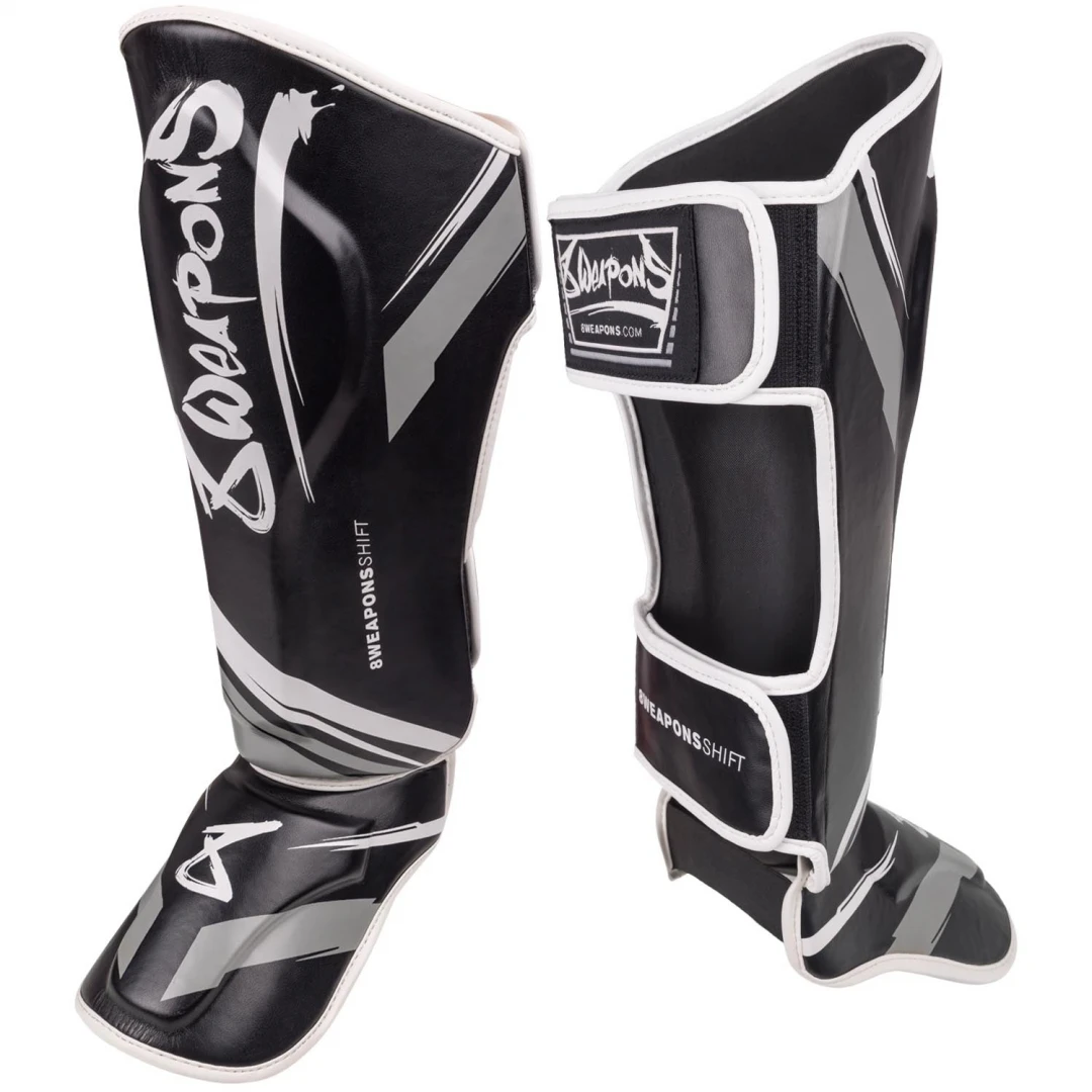 8 WEAPONS Chrániče holení Shift - černo/bíléChrániče holení Unlimited vás komplexně ochrání v každé tréninkové situaci a sníží riziko zranění na minimum. Vícevrstvé a pevné polstrování zabraňuje proniknutí holenní kosti do polstrování. I při tvrdých úderech na lokty se výrazně snižuje riziko pohmožděnin. Pro stabilní uchycení získáte dva široké suché zipy, které lze snadno otevřít a zavřít i v boxerských rukavicích. Navíc dva elastické pásky drží chránič na místě v oblasti chodidla. - Zvýšené tlumení na holeni- vysoká úroveň ochrany při tvrdém sparingu- dva široké suché zipy- dva elastické pásky na nártu- vysoce kvalitní syntetická kůže8 WEAPONS