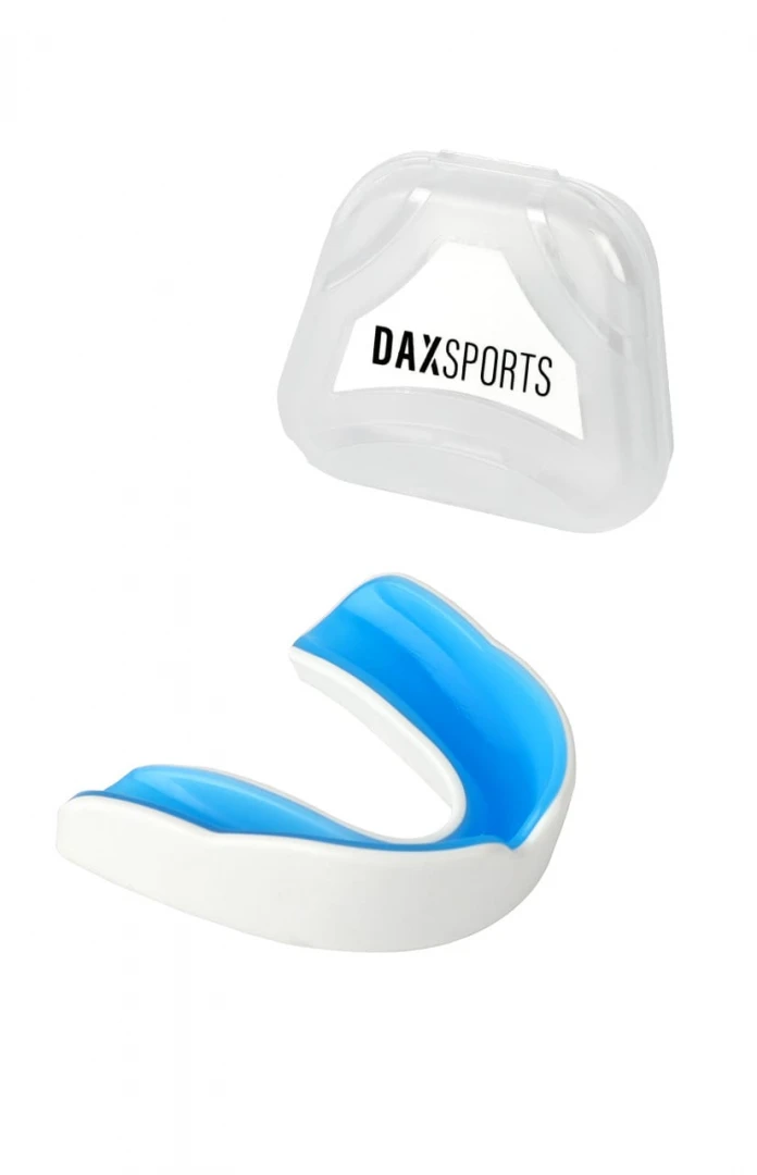 DAX Chránič zubů BitFit - bílo/modrýDvouvrstvý chránič zubů Boil & Bite (odolný náraz pohlcující vnější rám + těsný a pohodlně padnoucí gel na vnitřní straně) poskytuje vynikající ochranu a pohodlné nošení.- široké dýchací kanálky- kruhový polštářek- enenly distributed bite and anti-slip polštářky- Materiál vyhovující požadavkům FDA ( certifikát CE- spolehlivá ochrana zubů- Dodává se s ochranným pouzdrem pro lepší hygienu.DAX