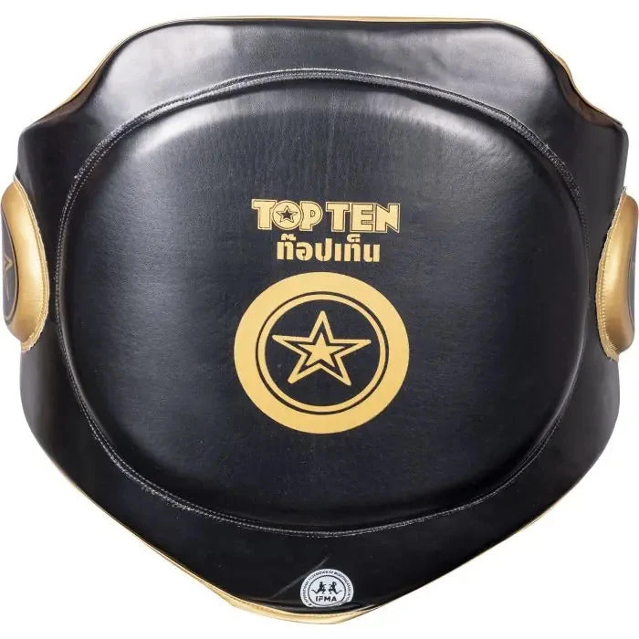 Tréninkový pás Top Ten IFMA "Naa" Vyrobeno z kvalitní umělé kůže, která má vnější straně tréninkového pásu „Naa“ hladký povrch. Měkký vnitřní materiál zároveň chrání kontaktní plochu na pokožce před podrážděním. Díky zesíleným nárazovým zónám a bočním vycpávkám jsou oblasti na boku pásu dvojnásobně chráněny. Vyrobeno z kvalitní umělé kůže Dvojité polstrování Vnitřní podšívka je šetrná k pokožce Pevný suchý zip