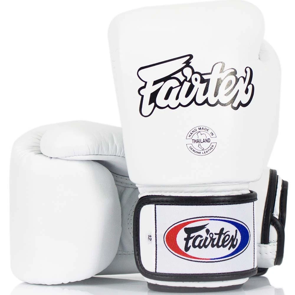 Fairtex Boxerské rukavice BGV1 - bíléBoxerské rukavice BGV1 v bílé barvě od tradiční Thajské značky Fairtex, která byla založena již v roce 1958. Od té doby se stala jednou z nejlegendárnějších značek pro bojovníky po celém světě. Rukavice patří k tomu nejlepšímu a nejkvalitnějšímu co můžete najít na trhu. Fairtex boxerské rukavice jsou vyrobeny z velmi kvalitní kůže, která zajišťuje dlouhou životnost. Skvěle padnou na ruku a mají zapínání na suchý zip. Palec rukavic je přichycen k rukavici, aby se zabránilo zbytečnému zranění. Fairtex boxerské rukavice jsou ručně vyrobeny v Thajsku.Fairtex