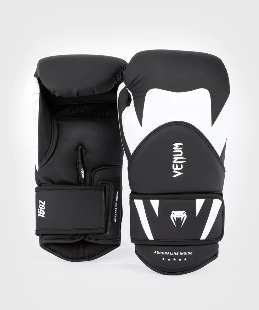 Boxerské rukavice VENUM CHALLENGER 4.0 - černo/bíléBoxerské rukavice Venum Challenger 4.0 jsou nejnovější evolucí v nejprodávanější řadě Venum Challenger. Boxerské rukavice VENUM jsou vyráběny v Thajsku. Vrstvená pěna s trojitou hustotou a zesílená dlaň nabízí výbornou ochranu pro začátečníky až středně pokročilé bojovníky. Boxerské rukavice Challenger 4.0 jsou vyrobeny z prvotřídní syntetické kůže a nabízejí vynikající odolnost. Na zápěstí umístěn nápis "Adrenaline Inside" jako mantra pro sportovce.Vlastnosti produktu:- Prémiová syntetická kůže.- Vhodné pro box, kickbox a Muay Thai.- Pro pravidelné používání: 2-3x týdně.- Pěna s trojitou hustotou pro optimální tlumení nárazů.- Zesílená dlaň pro lepší pohodlí.- Připevněný palec pro větší ochranu před zraněním.- Široké zapínání na suchý zip.- "Adrenaline Inside" na zápěstí.- Loga Venum.VENUM