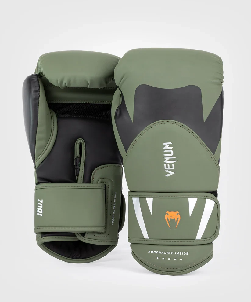 Boxerské rukavice VENUM CHALLENGER 4.0 - khaki/černéBoxerské rukavice Venum Challenger 4.0 jsou nejnovější evolucí v nejprodávanější řadě boxerských rukavic Venum Challenger. Naše CHALLENGER 4.0 jsou pro vás to pravé! Boxerské rukavice VENUM CHALLENGER 4.0 v khaki barvě jsou vyráběny v Thajsku z prvotřídních materiálů. Ideální pro Vás trénink. Vrstvená pěna s trojitou hustotou a zesílená dlaň nabízí solidní ochranu pro začátečníky až středně pokročilé bojovníky. Boxerské rukavice Challenger 4.0 jsou vyrobeny z prvotřídní syntetické kůže a nabízejí vynikající odolnost. Na zápěstí umístěn nápis "Adrenaline Inside" jako mantra pro sportovce.Vlastnosti produktu:- Prémiová syntetická kůže- Vhodné pro box, kickbox a Muay Thai- Pravidelné používání: 2-3x týdně- Pěna s trojitou hustotou pro optimální tlumení nárazů- Zesílená dlaň pro lepší pohodlí- Připevněný palec pro větší ochranu před zraněním- Široké zapínání na suchý zip- "Adrenaline Inside" na zápěstí- Loga Venum. VENUM