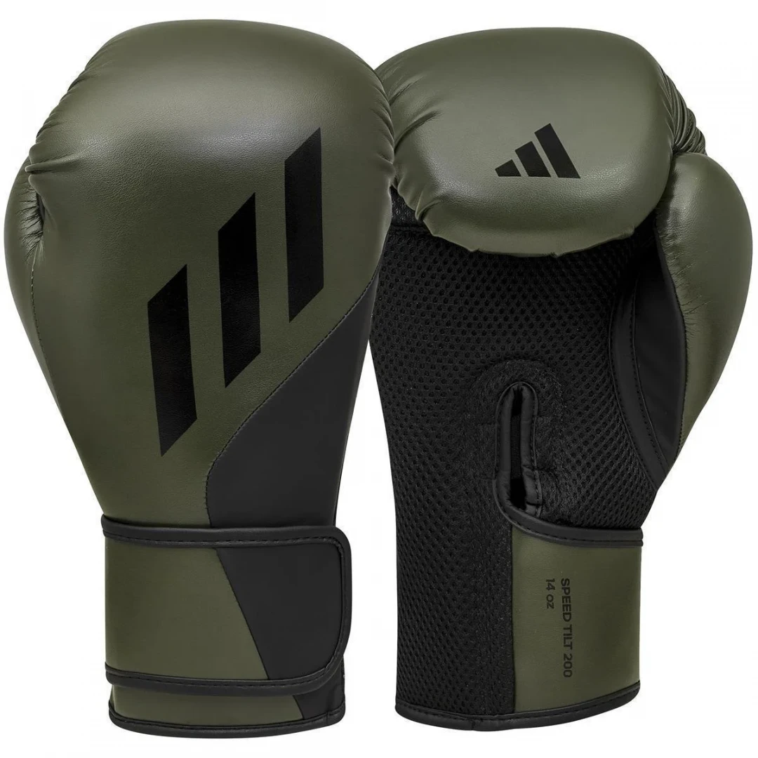 Boxerské rukavice Adidas Speed Tilt 200 - zeleno/černéNové boxerské rukavice Speed Tilt 200 od společnosti adidas jsou vyrobeny z vysoce kvalitní syntetické kůže FLX 3.0. Předtvarovaná jednodílná pěnová výplň přivádí zápěstí do správné úderové polohy a zaručuje tak optimální tlumení a dokonalou ochranu pěstí.- Materiál: vysoce kvalitní syntetická kůže FLX 3.0- Správná fixace pěstí v rukavici díky inovativní technologii TILT.- Nylonová podšívka pro pohodlné nošeníAdidas