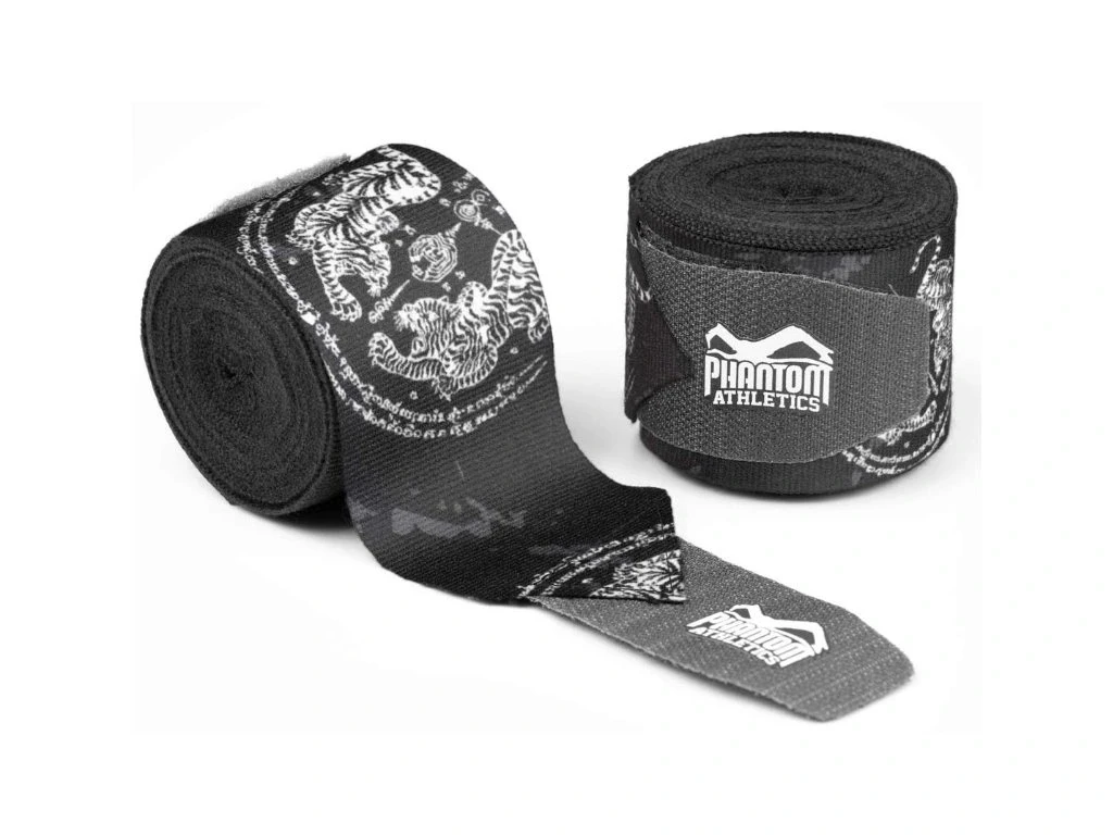 PHANTOM Boxerské Bandáže 4 m - Sak Yant - černéPHANTOM Boxerské Bandáže jsou vyrobeny z tenkého, poloelastického materiálu (bavlny a polyesteru). Úžasné polo-elastické bandáže pro nejlepší ochranu. Perfektní zpevnění mezi prsty a klouby. Bandáže PHANTOM jsou dlouhé 4 m. Bandáže mají praktické poutko na palec a jsou na suchy zip.PHANTOM