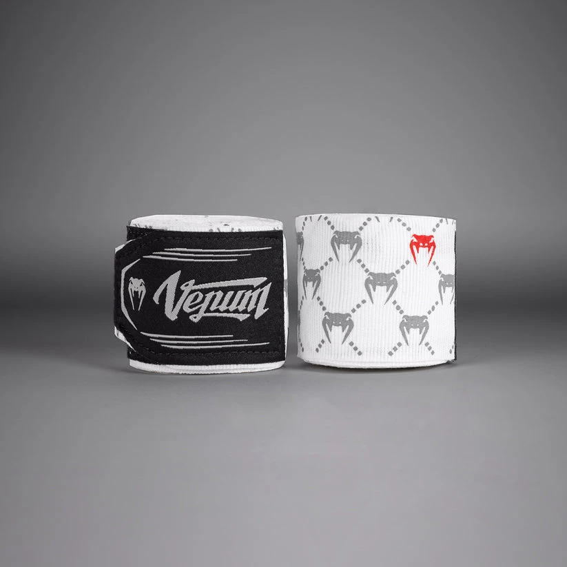 Obruč na palec a zapínání na suchý zip zajišťují bezpečné obtočení, abyste se mohli soustředit na svůj další úder. Černobílá barevná kombinace se vyznačuje opakovaným sublimovaným logem Venum podél bandáže a značkovou nášivkou na zapínání. Vhodné pro box, Muay Thai, MMA a další bojové sporty.- Elastická bavlna pro pohodlí a pevnost.- Zapínání na suchý zip: rychlé a individuální utahování.- Prodává se v párech.- Logo Venum.- 2,5 metrů dlouhéVENUM